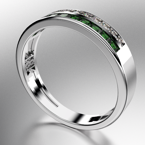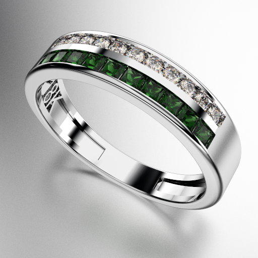 ANILLO DOBLE MEDIO SIN FIN UNA HILERA CON PIEDRAS CARRE (2MM) Y OTRA CON PIEDRAS REDONDAS (1.5MM) CUBIC-ESMERALDA ORO BLANCO 18KTS (MOD. A044) Cuotas - Sin Interés: