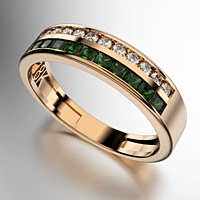 ANILLO DOBLE MEDIO SIN FIN UNA HILERA CON PIEDRAS CARRE (2MM) Y OTRA CON PIEDRAS REDONDAS (1.5MM) CUBIC-ESMERALDA ORO ROJO 18KTS (MOD. A044) Cuotas - Sin Interés:
