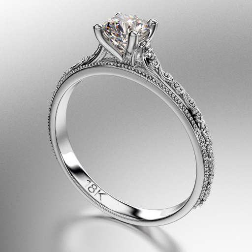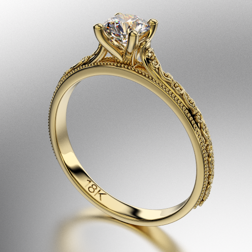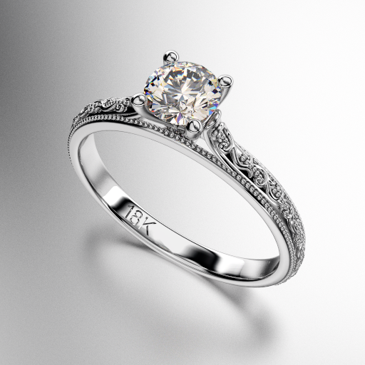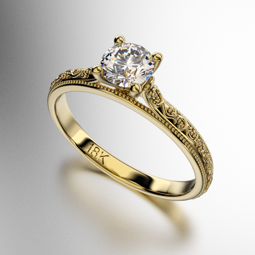 ANILLO SOLITARIO VINTAGE CON PIEDRA REDONDA CON DISENO A LOS COSTADOS (MOD. A069)