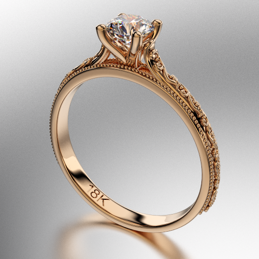 ANILLO SOLITARIO VINTAGE CON PIEDRA REDONDA (5MM) CON DISEÑO A LOS COSTADOS CUBIC BLANCO (REDONDA 1U*5MM) ORO ROJO 18KTS (MOD. A069 Cuotas - Sin Interés: