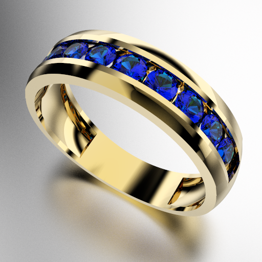 ANILLO MEDIO SIN FIN ANCHO CON PIEDRAS REDONDAS (3MM) ZAFIRO AZUL ORO AMARILLO 18KTS (MOD. A028) Cuotas - Sin Interés: