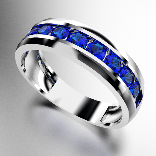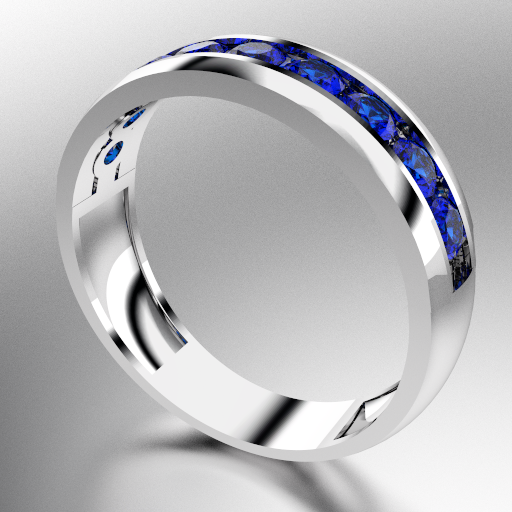 ANILLO MEDIO SIN FIN ANCHO CON PIEDRAS REDONDAS (3MM) ZAFIRO AZUL ORO BLANCO 18KTS (MOD. A028) Cuotas - Sin Interés: