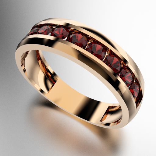 ANILLO MEDIO SIN FIN ANCHO CON PIEDRAS REDONDAS (3MM) RUBI ORO ROJO 18KTS (MOD. A028) Cuotas - Sin Interés: