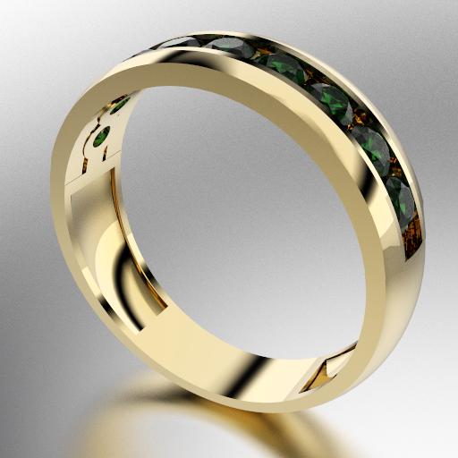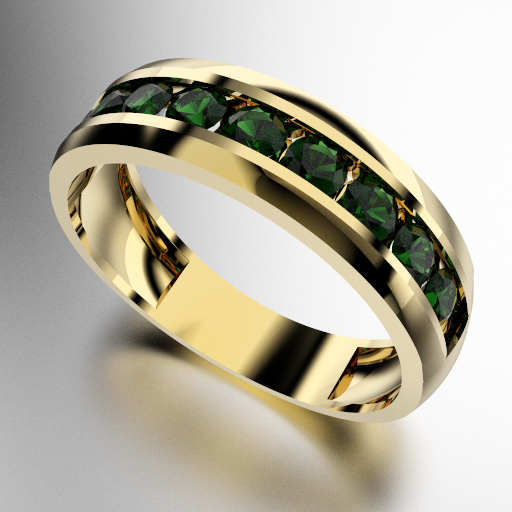 ANILLO MEDIO SIN FIN ANCHO CON PIEDRAS REDONDAS (3MM) ESMERALDA ORO AMARILLO 18KTS (MOD. A028) Cuotas - Sin Interés: