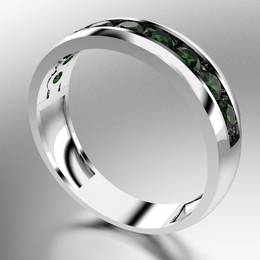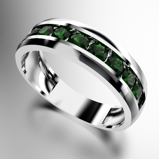 ANILLO MEDIO SIN FIN ANCHO CON PIEDRAS REDONDAS (3MM) ESMERALDA ORO BLANCO 18KTS (MOD. A028) Cuotas - Sin Interés: