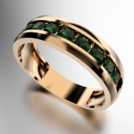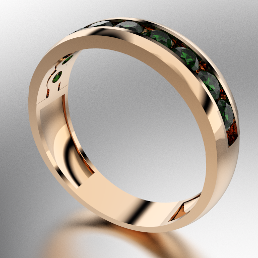 ANILLO MEDIO SIN FIN ANCHO CON PIEDRAS REDONDAS (3MM) ESMERALDA ORO ROJO 18KTS (MOD. A028) Cuotas - Sin Interés: