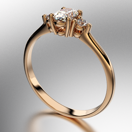 ANILLO SOLITARIO CON CUATRO GRIFAS PIEDRA OVAL (6X4MM) Y DOS REDONDAS EN LOS EXTREMOS CUBIC BLANCO ORO ROJO 18KTS (MOD. A104) Cuotas - Sin Interés: