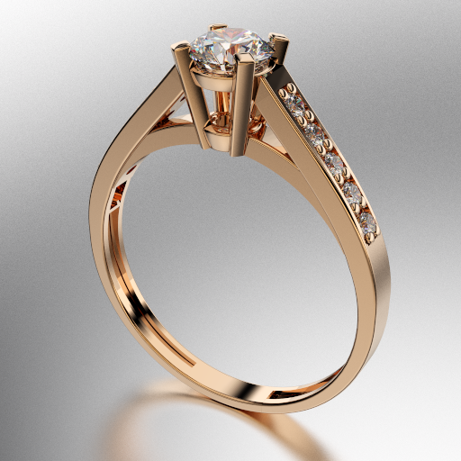 ANILLO SOLITARIO COSTADO CON PIEDRAS REDONDAS (1.5MM/5MM) CUBIC BLANCO ORO ROJO 18KTS (MOD. A021) Cuotas - Sin Interés: