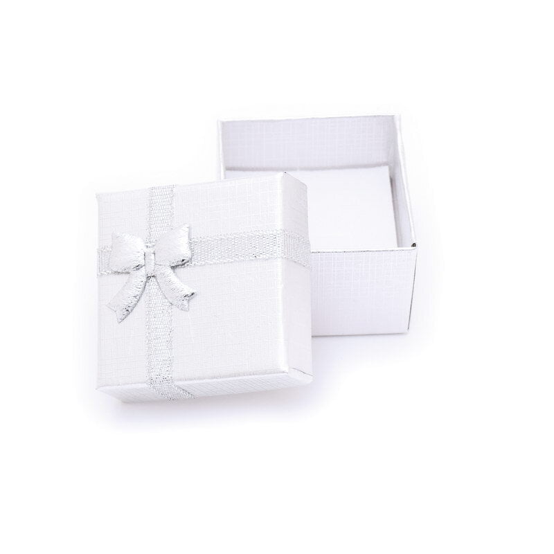 ESTUCHE DE CARTON PARA ANILLO (50*50*34) PLATEADO CON DISEÑO